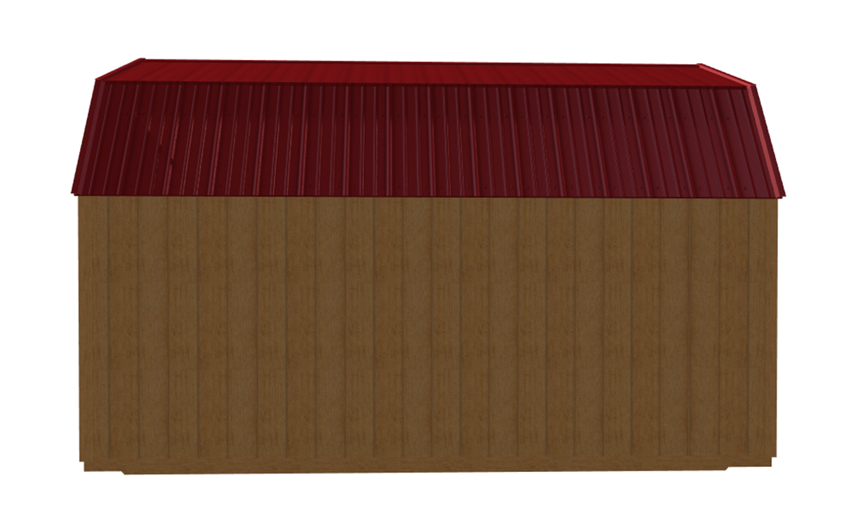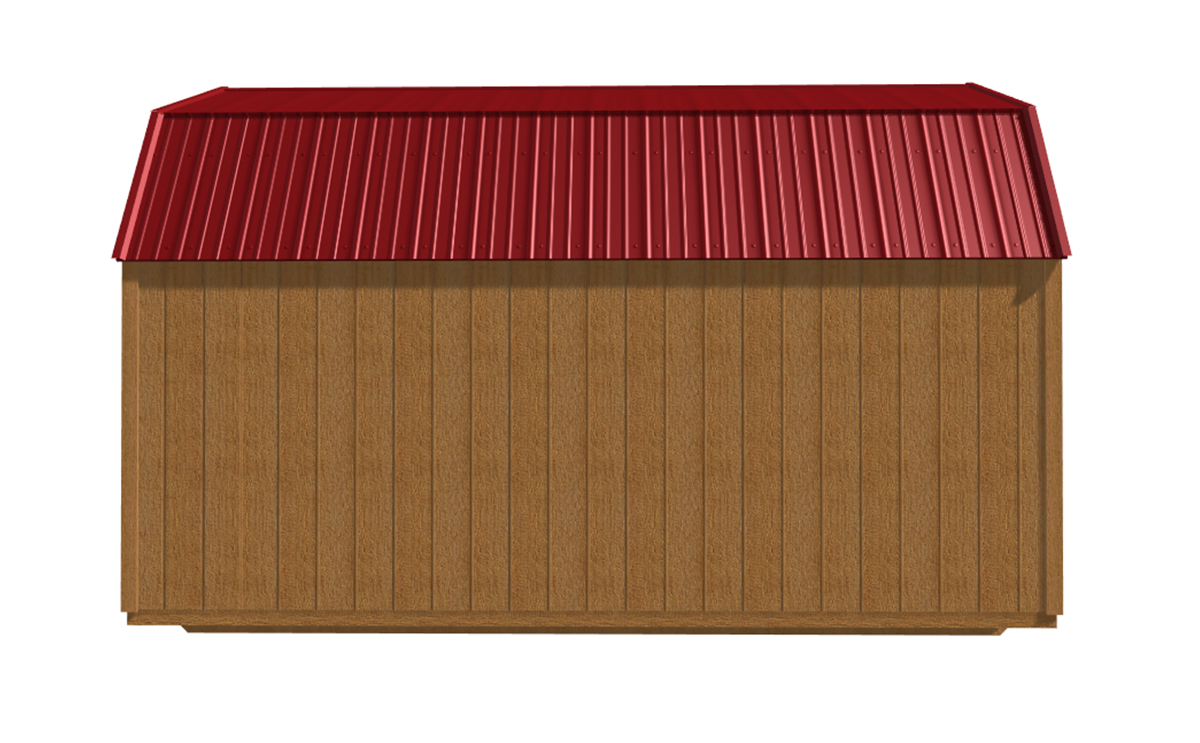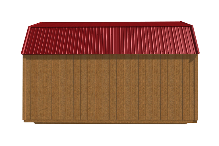 Features Include: 46” wood door for 8’-wide buildings 72” double wood door for 10’- and 12’-wide buildings Two-part loft with full width opening Natural Wood Buildings: Includes staining and water sealing the LP Smart Side with Honey Gold Olympic stain. Comes standard on all painted and urethane buildings. Painted Buildings: Includes painting the siding and trim with any of our standard colors. Custom colors are available for an extra charge.