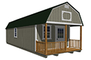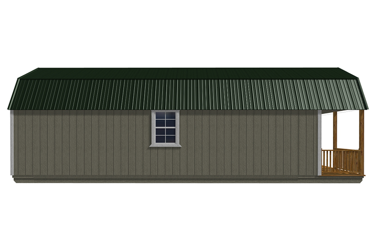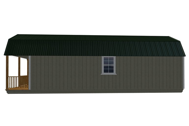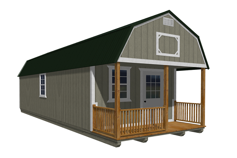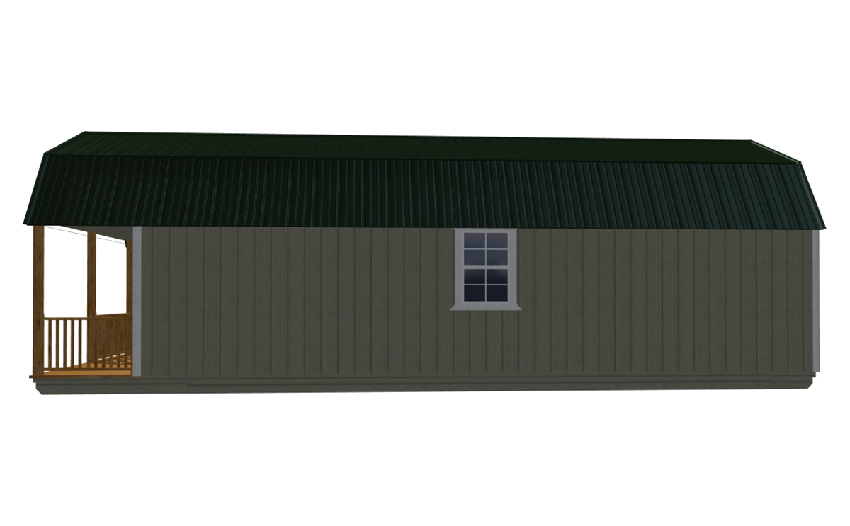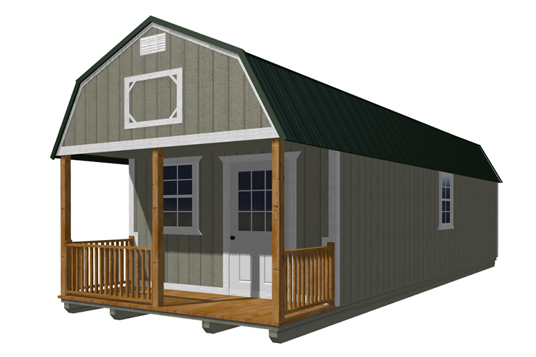Features Include: Three 2x3 ft. windows 9-lite door (72”H x 36”W) 6’3” standard wall height 4 ft. front porch Two-part loft with full width opening Natural Wood Buildings: Includes staining and water sealing the LP Smart Side with Honey Gold Olympic stain. Comes standard on all painted and urethane buildings. Painted Buildings: Includes painting the siding and trim with any of our standard colors. Custom colors are available for an extra charge.