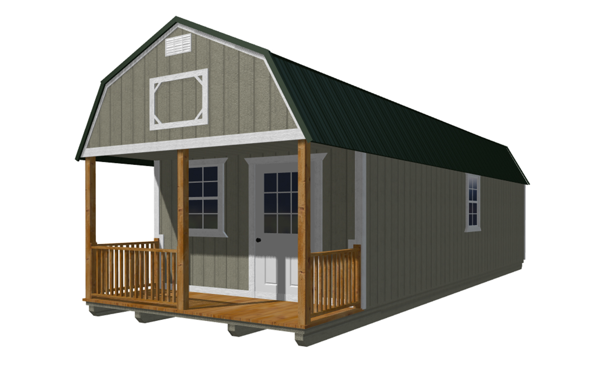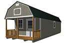 Who says you can’t have the best of both worlds? With the wood lofted barn cabin, you get the best of the lofted barn and the best of the cabin covered in a siding perfect for wooded or rural locations. It’s great for storage, an office or a workroom. This model comes in 10ft, 12ft and 14ft widths and features a loft, a 9-lite door, three 2x3ft windows and a front porch.